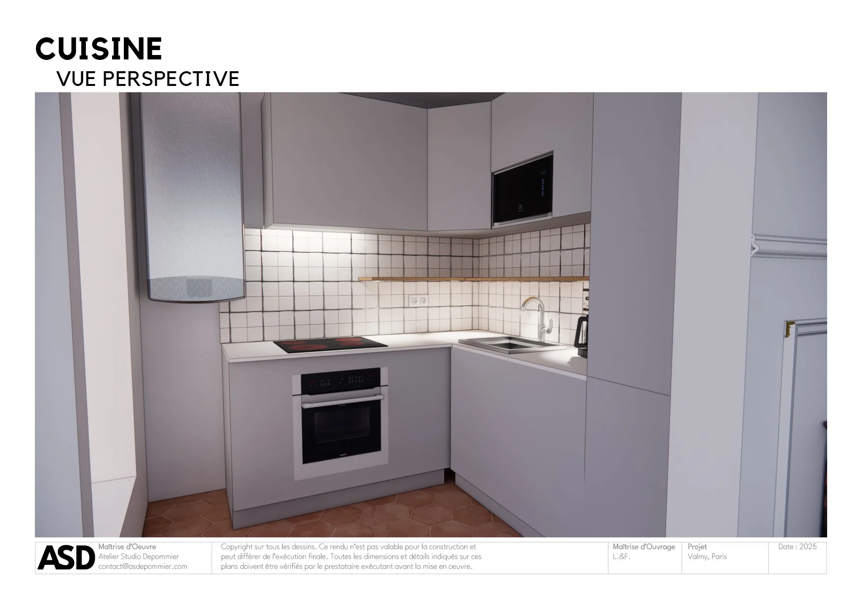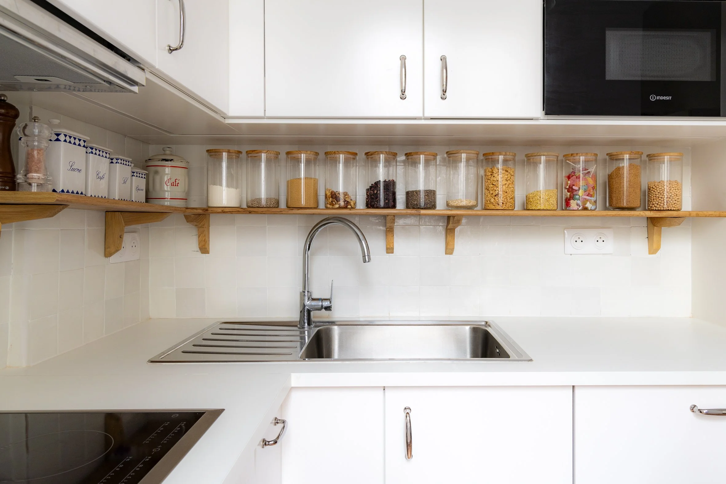 La crédence a été réalisée en carreaux de réemploi, prolongeant ainsi la démarche durable du projet.